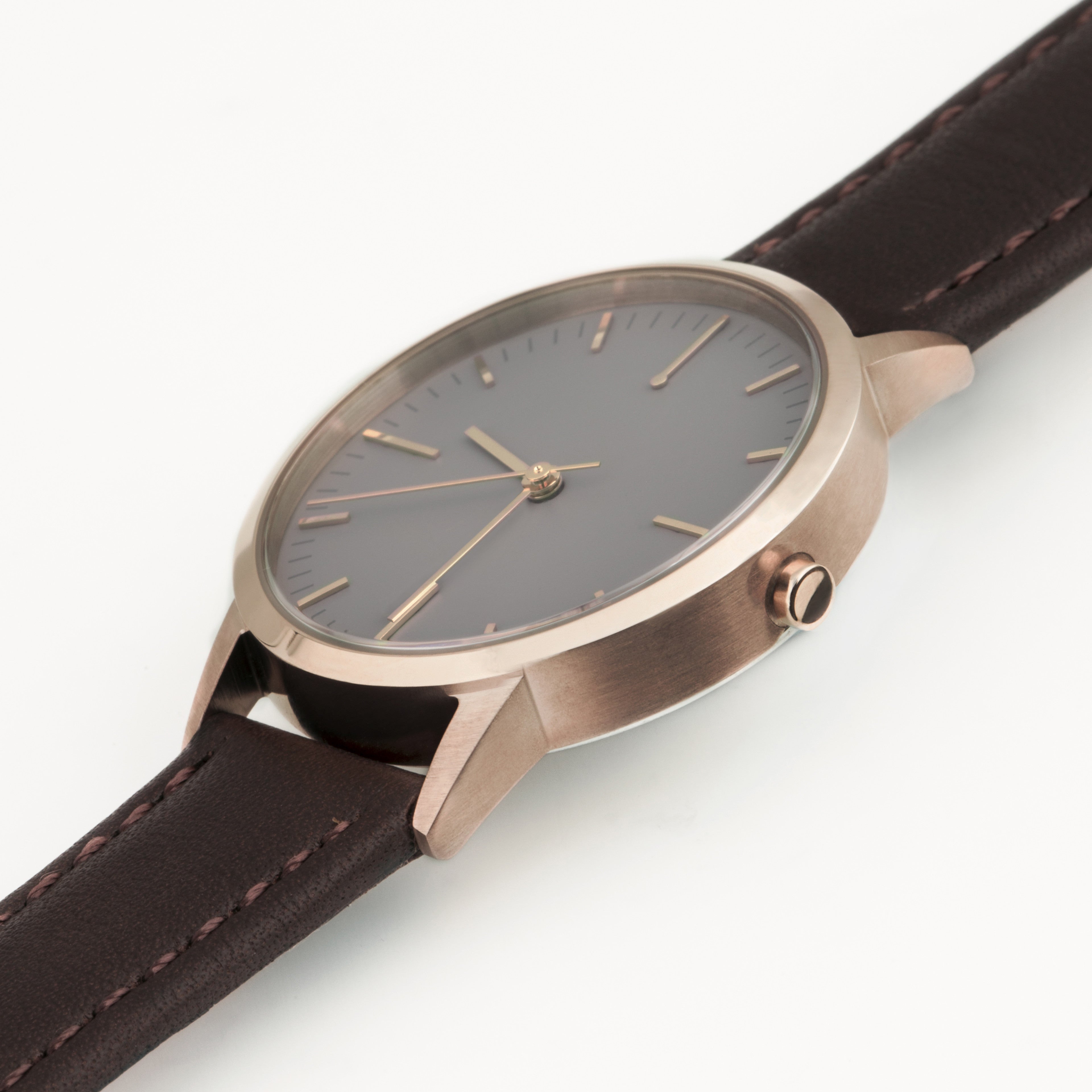 As seen in , the limited edition 30mm rose gold and dark brown women's watch combines the classic detailing of vintage watches with a modern minimalist finish.