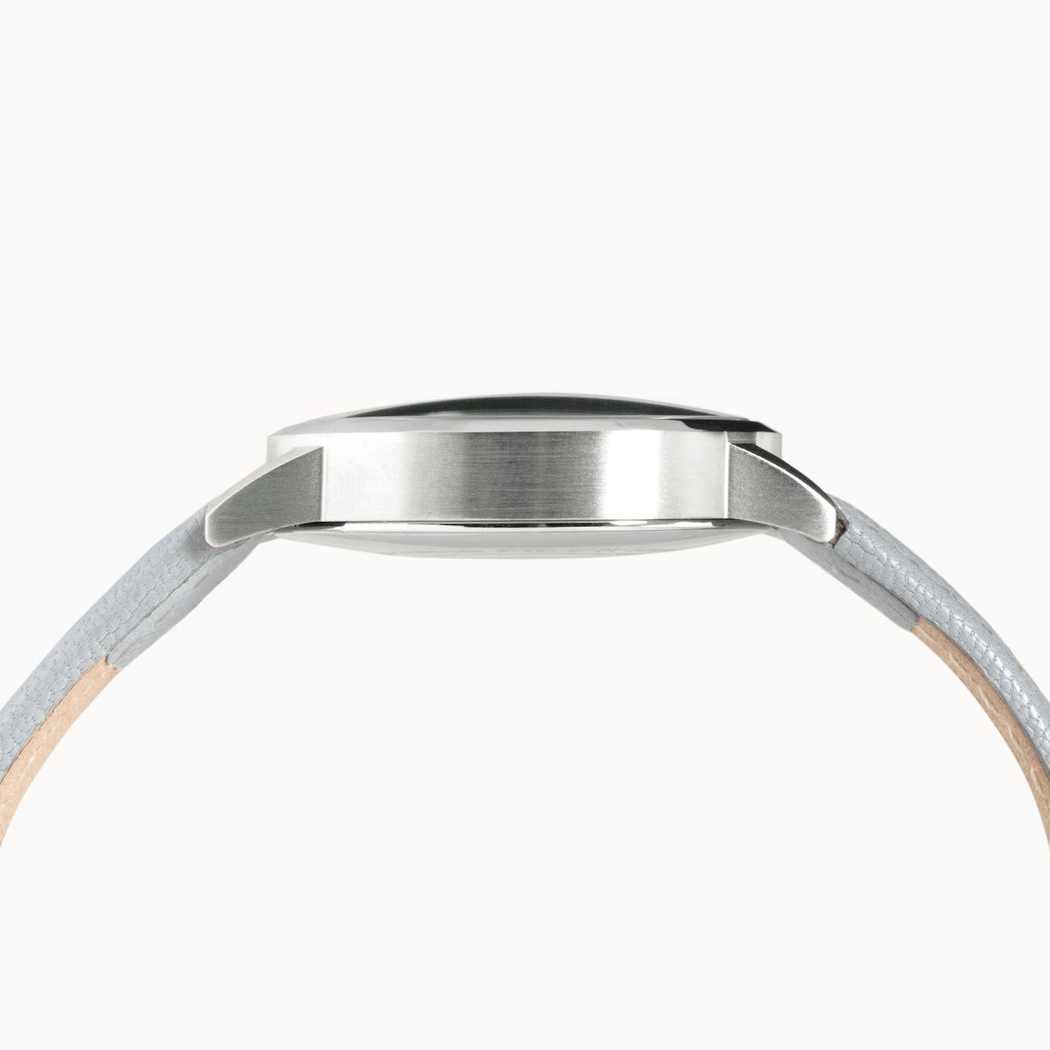 As seen in , the limited edition 30mm silver and grey women's watch combines the classic detailing of vintage watches with a modern minimalist finish.